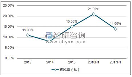 2013-2015 年及 2016、 2017 年上半年弃风率