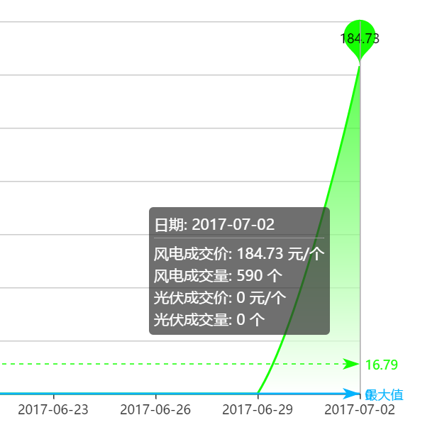 绿证认购平台显示,风电绿证共成交590个,均价184.73元/个,最高价306.5元/个,最低价176.6元/个;光伏绿证截止目前还没有成交。