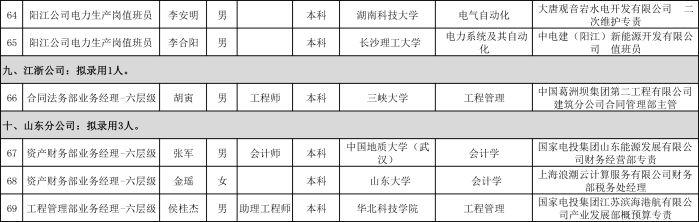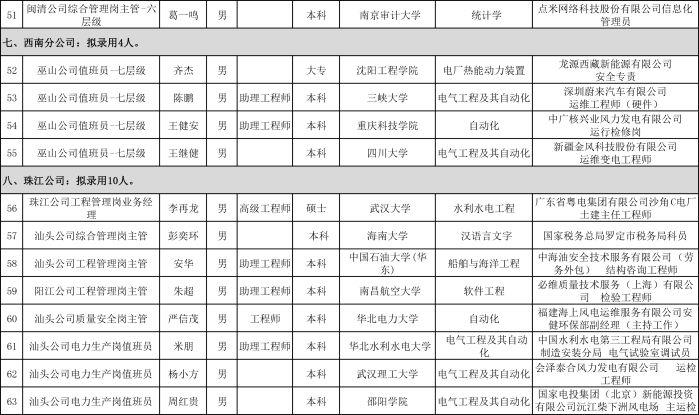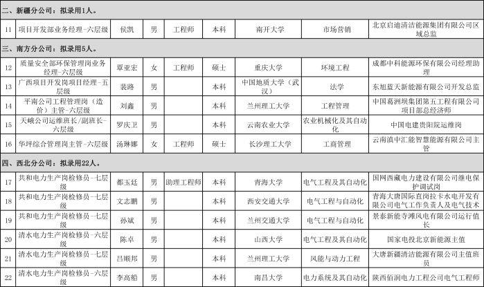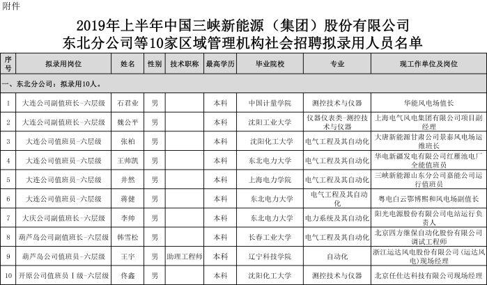 附件:2019年上半年中国三峡新能源(集团)股份有限公司东北分公司等10家区域管理机构社会招聘拟录用人员名单