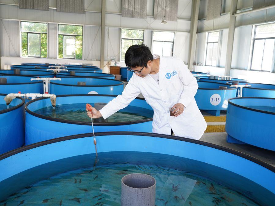 长江鲟每年春季产卵繁育。今年3月底,李洋开始试验给长江鲟幼鱼投喂丰年虫。